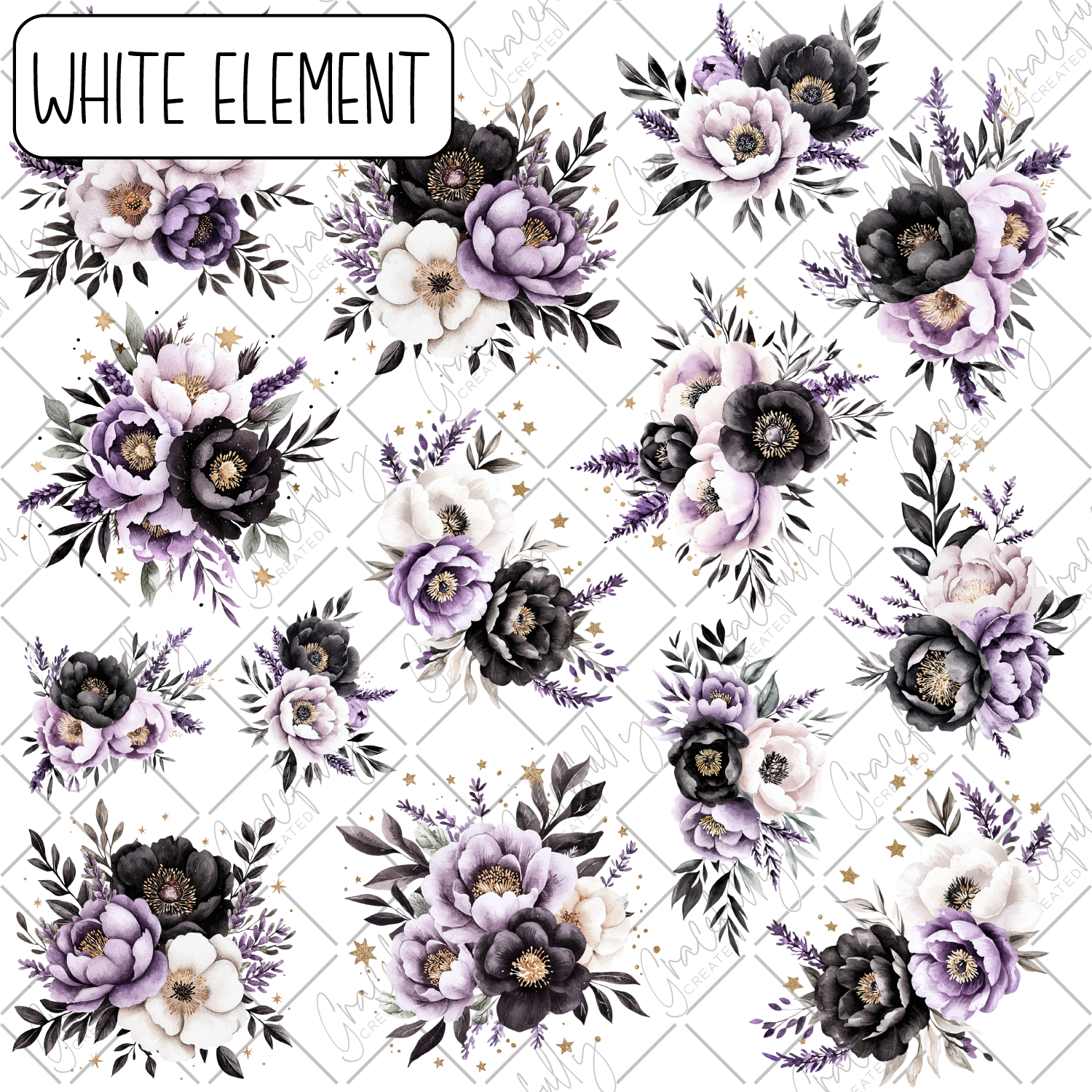 White Elements are printed on an 11.5" CLEAR vinyl sheet with the design printed with white ink, so it can be used on any color background and the clear parts of the vinyl will show the color underneath.