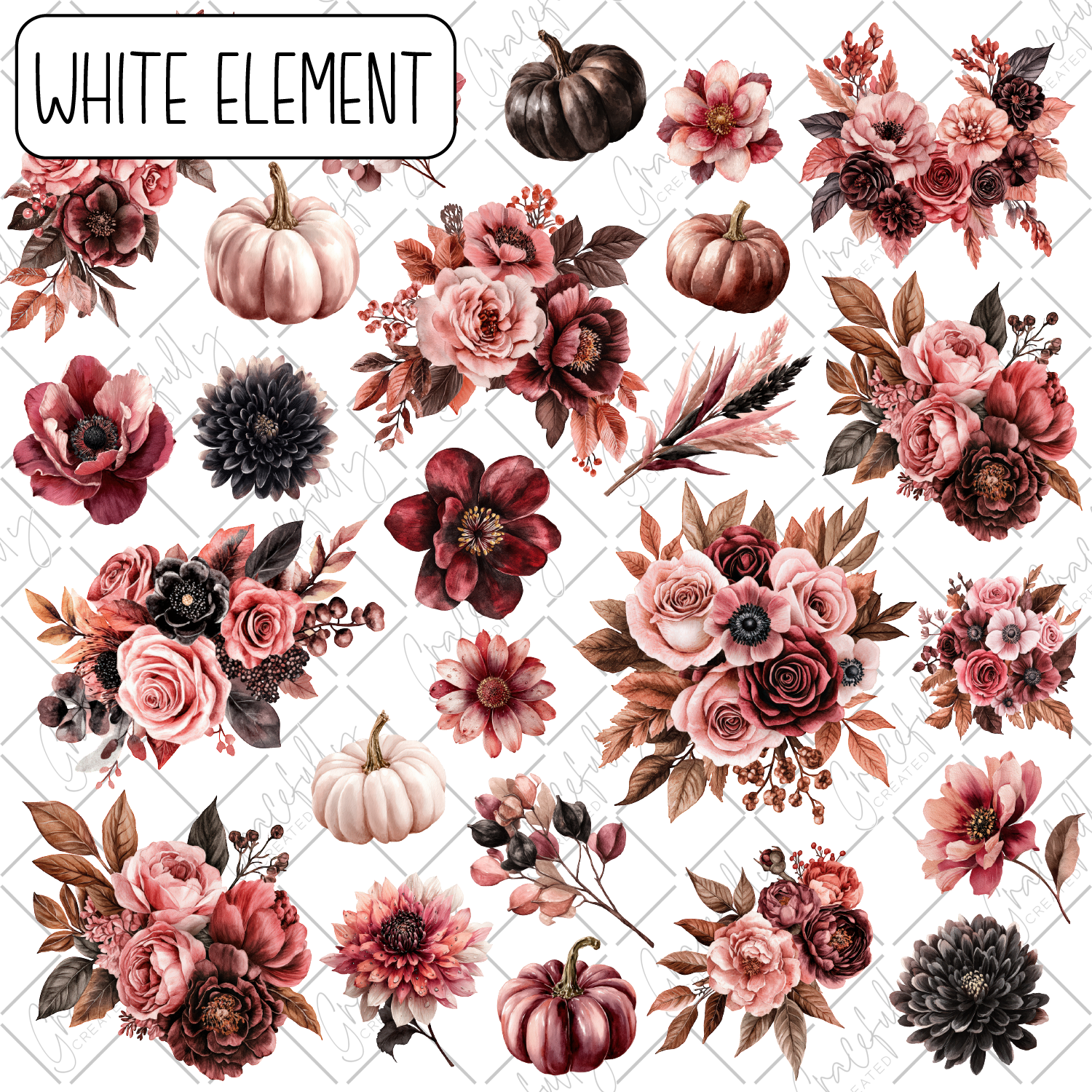 White Elements are printed on an 11.5" CLEAR vinyl sheet with the design printed with white ink, so it can be used on any color background and the clear parts of the vinyl will show the color underneath.