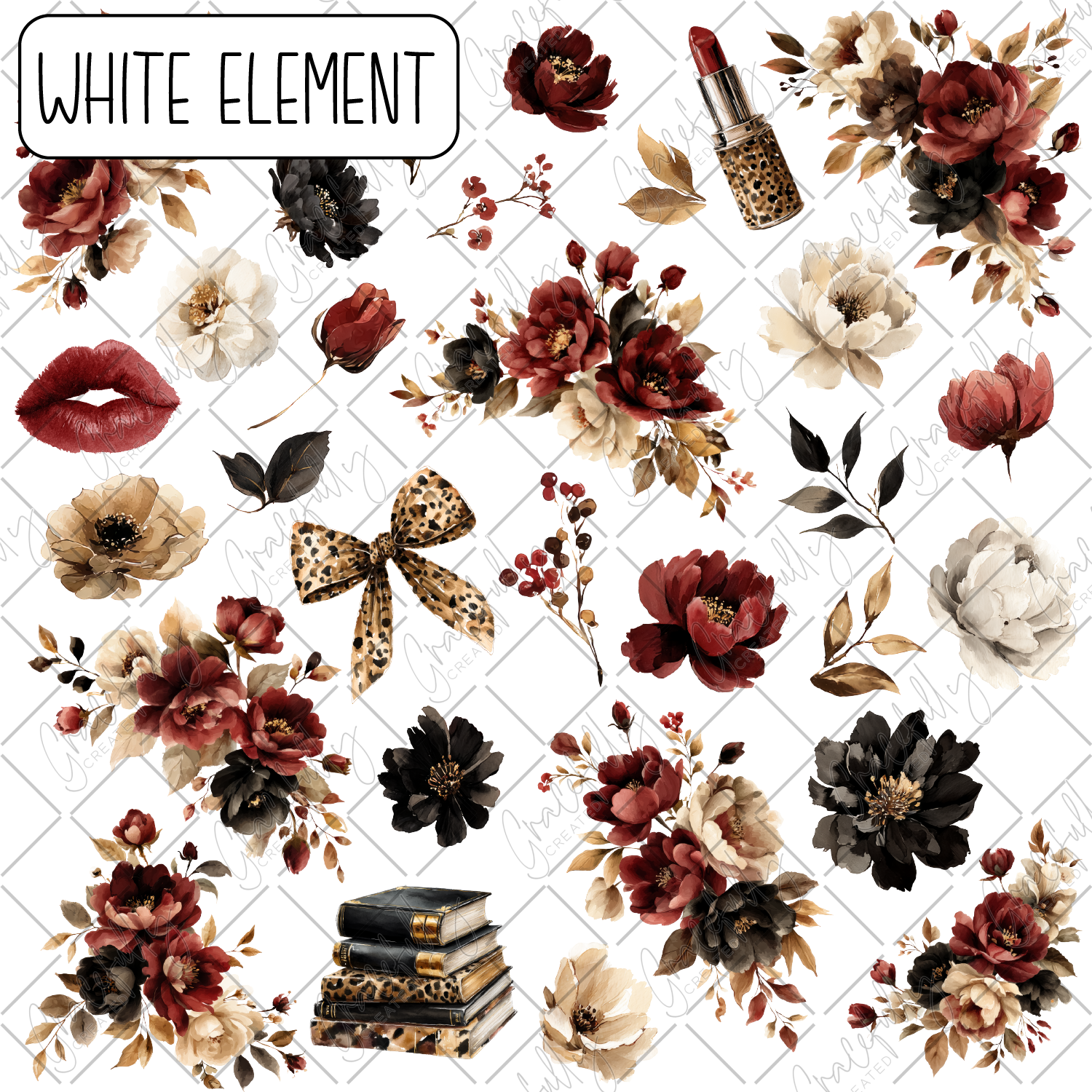 White Elements are printed on an 11.5" CLEAR vinyl sheet with the design printed with white ink, so it can be used on any color background and the clear parts of the vinyl will show the color underneath.