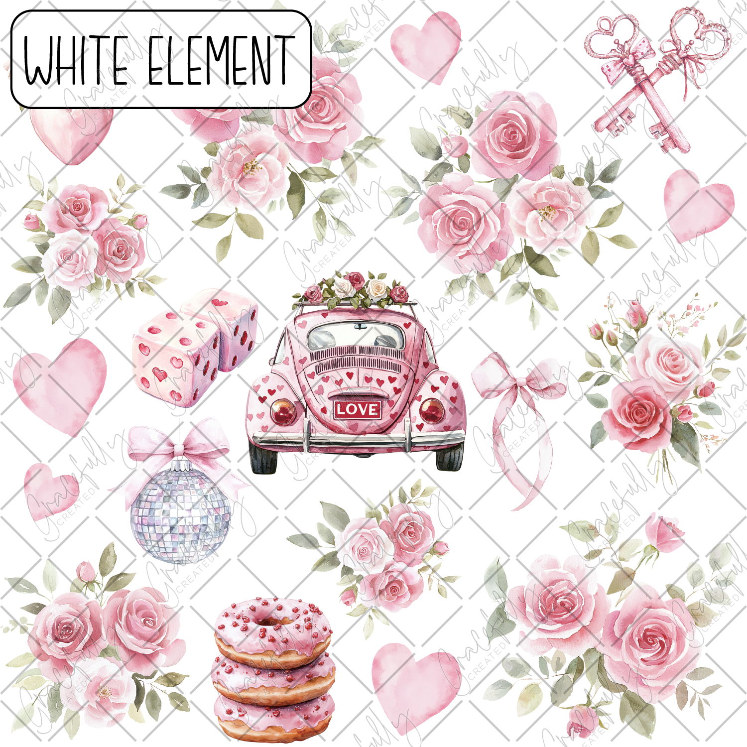 White Elements are printed on an 11.5" CLEAR vinyl sheet with the design printed with white ink, so it can be used on any color background and the clear parts of the vinyl will show the color underneath.