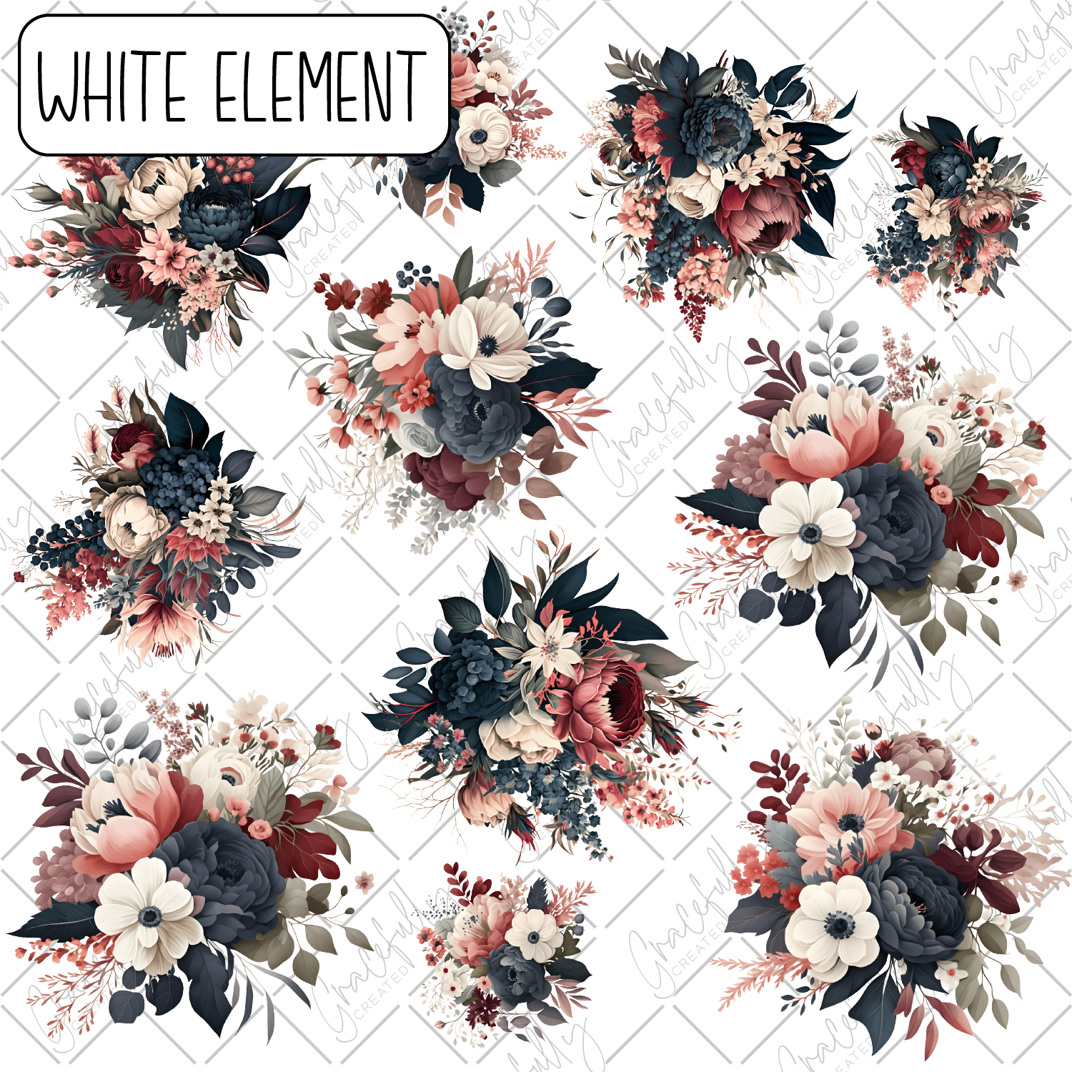 White Elements are printed on an 11.5" CLEAR vinyl sheet with the design printed with white ink, so it can be used on any color background and the clear parts of the vinyl will show the color underneath.