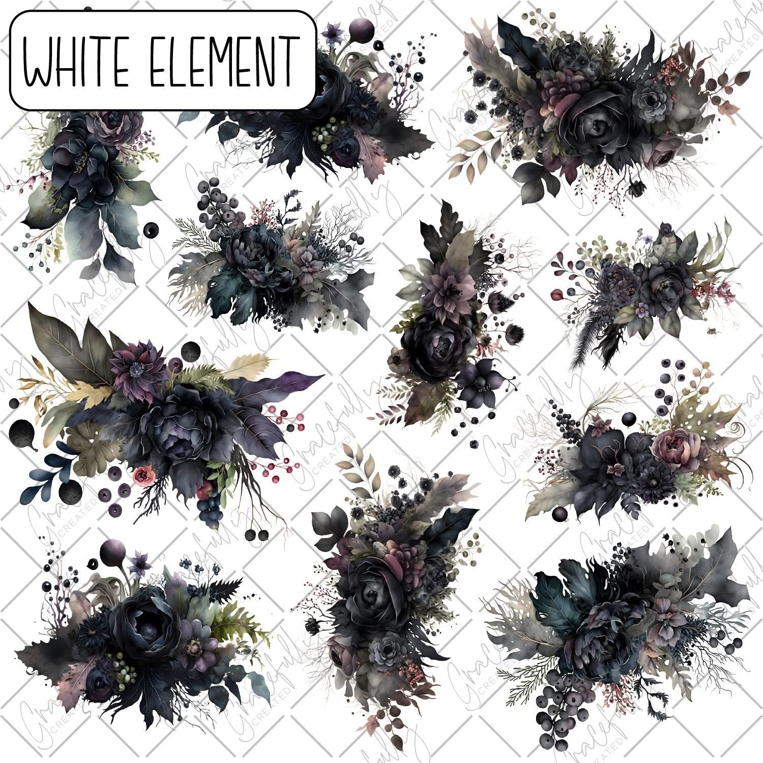 White Elements are printed on an 11.5" CLEAR vinyl sheet with the design printed with white ink, so it can be used on any color background and the clear parts of the vinyl will show the color underneath.